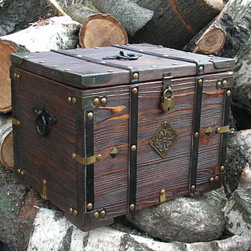 Надо заранее найти сундучок или ларец, для эффектности обмотать цепями и повесить замок.